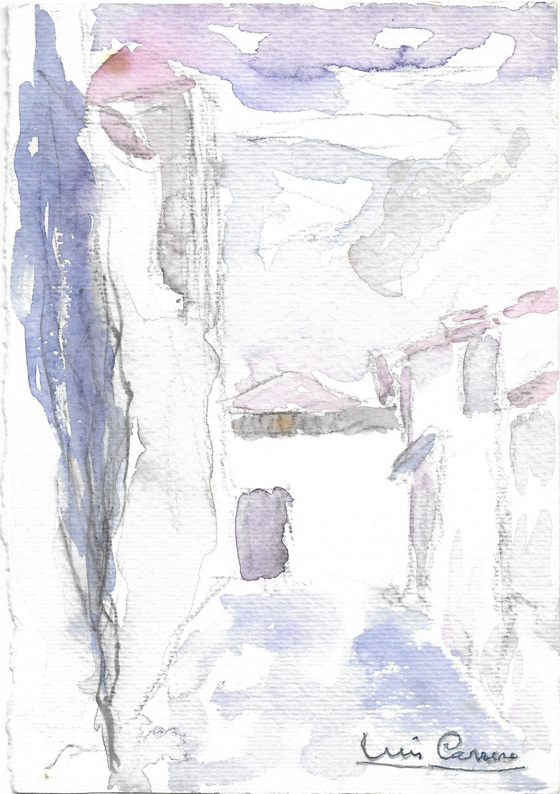 En este apartado exponemos algunas de las acuarelas de Luis Carrera. Estas obras pertenecen a la última década de su vida, cuando ya tenía dificultades para salir al campo o pintar cuadros más grandes. No estando fechadas, las hemos ordenado siguiendo un poco la evolución del artista, cada vez más cercano al arte abstracto.